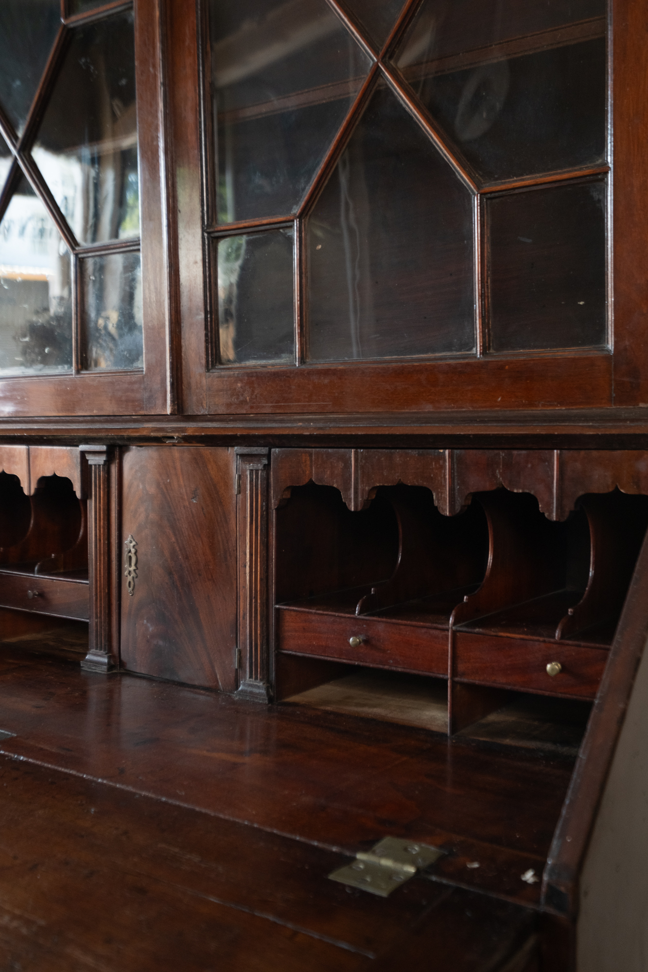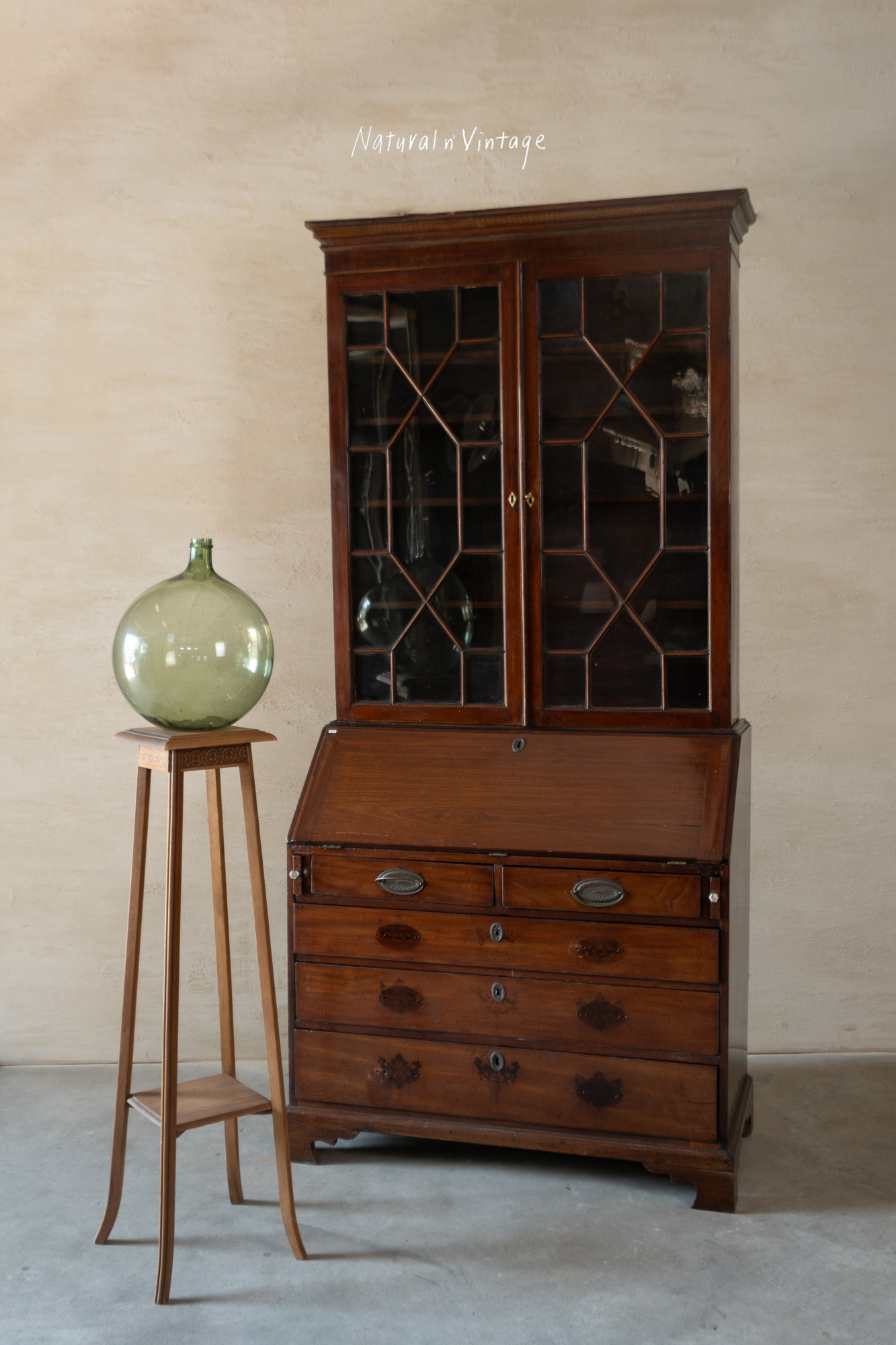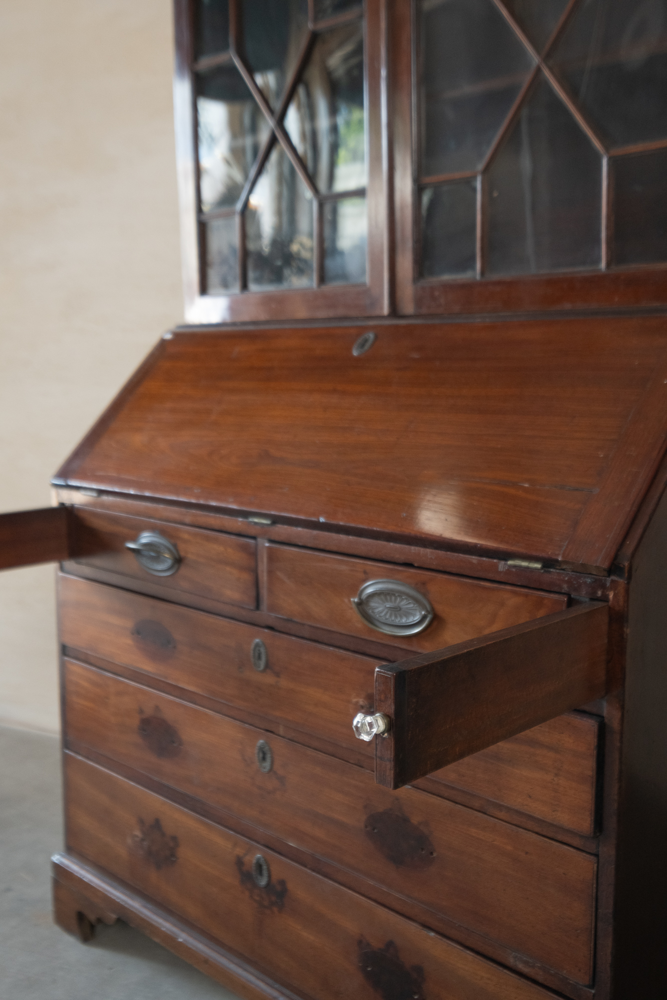 古董桃花心木玻璃寫字櫃