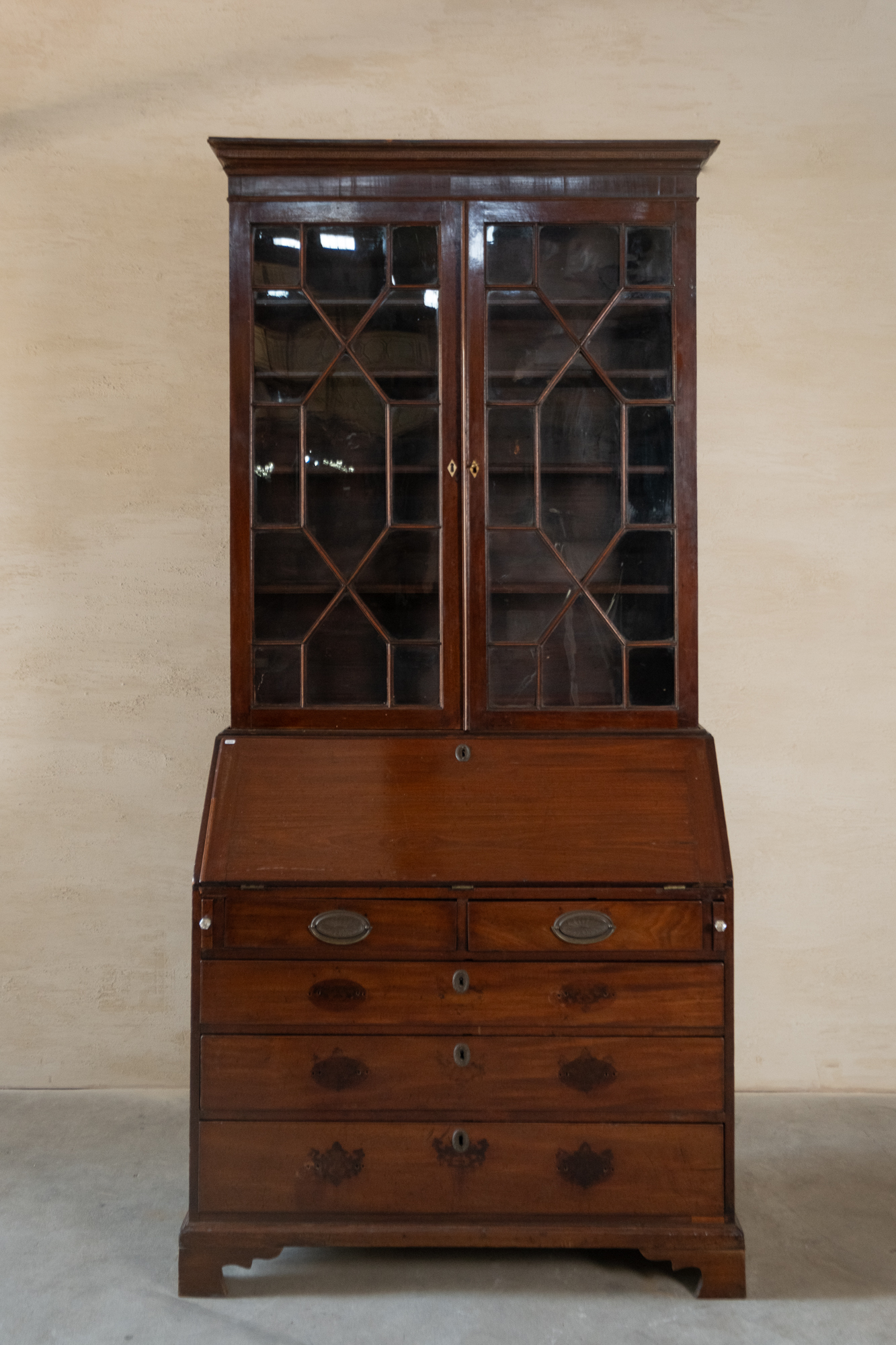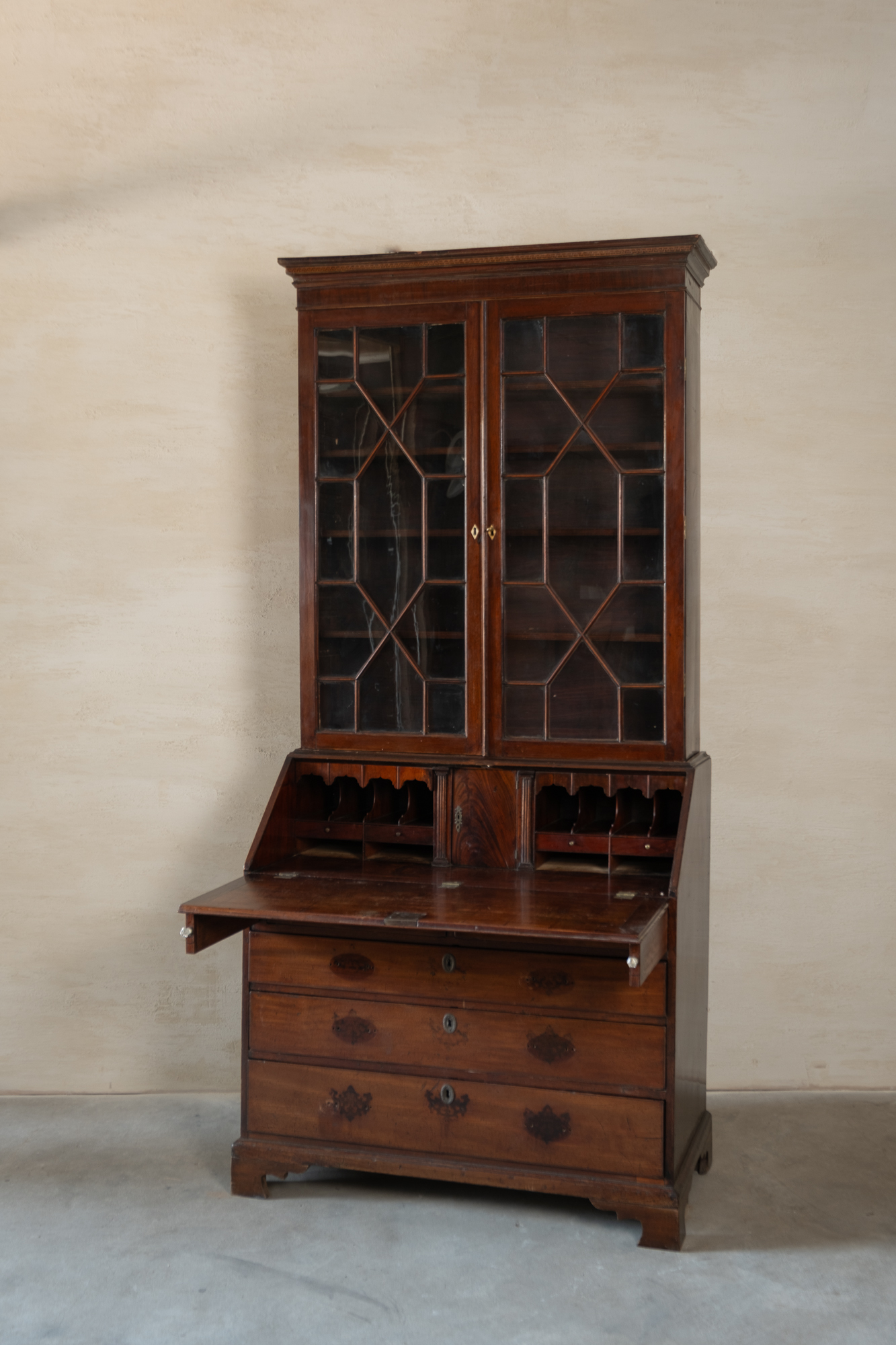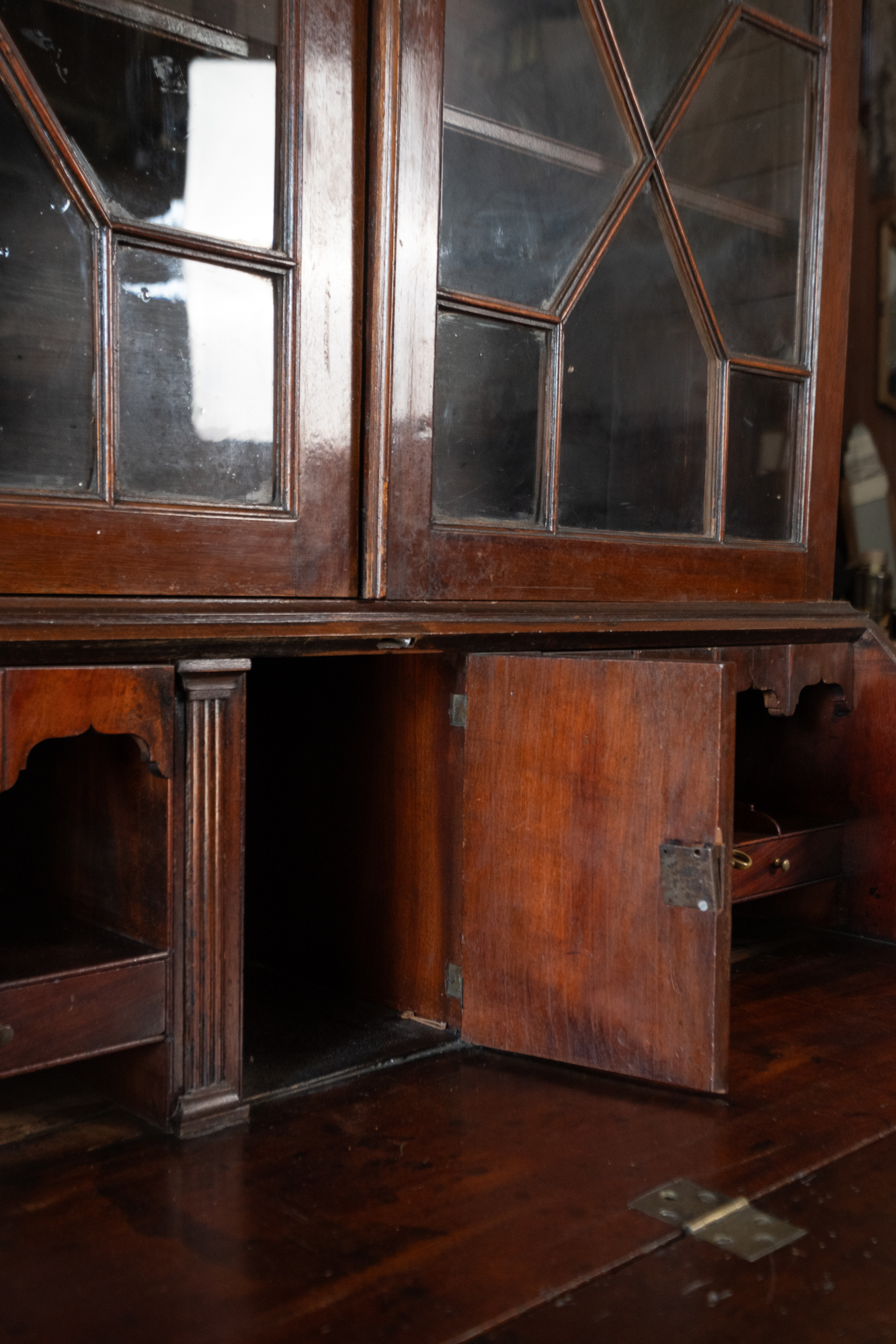 古董桃花心木玻璃寫字櫃