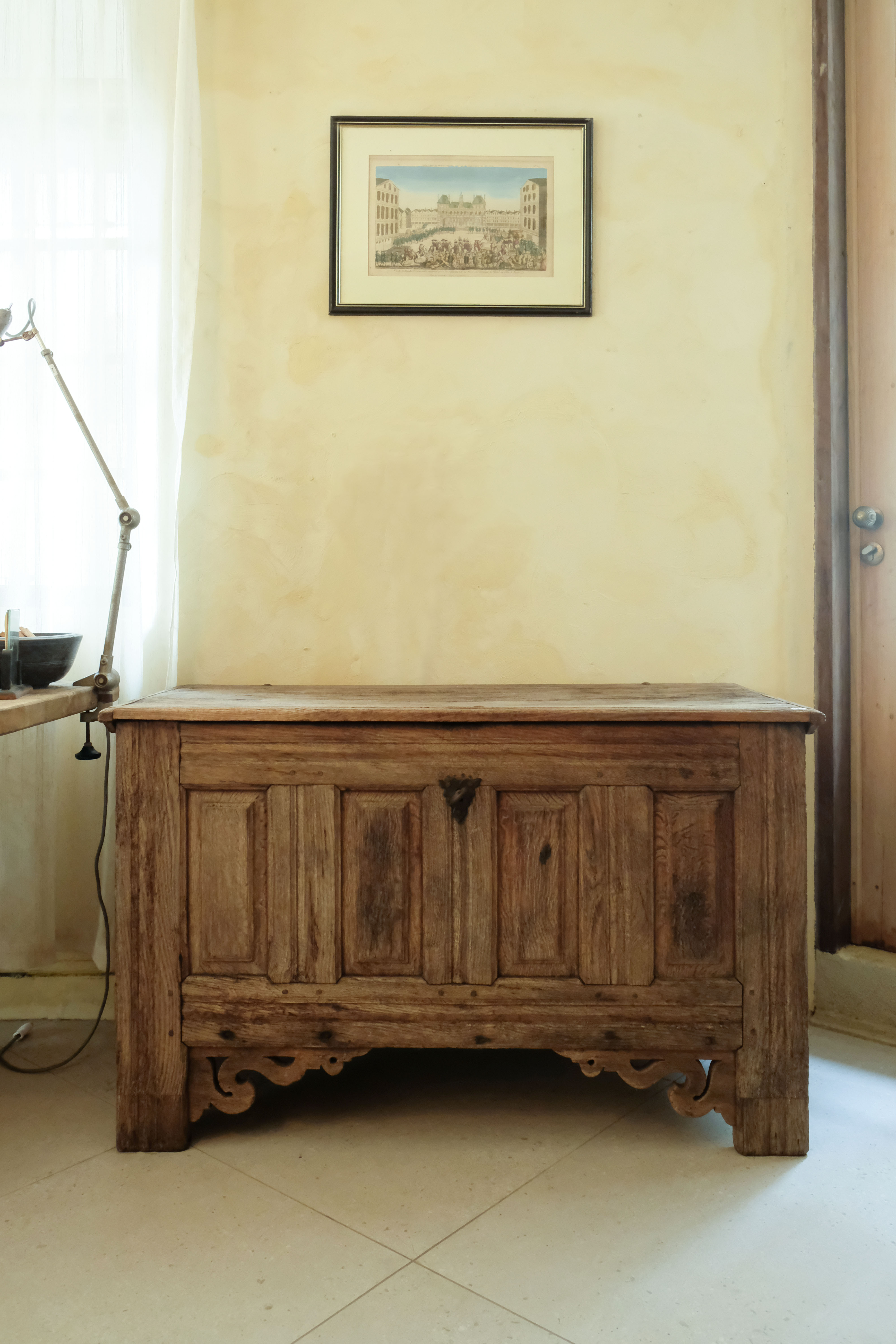 古橡木上掀雕刻收納櫃