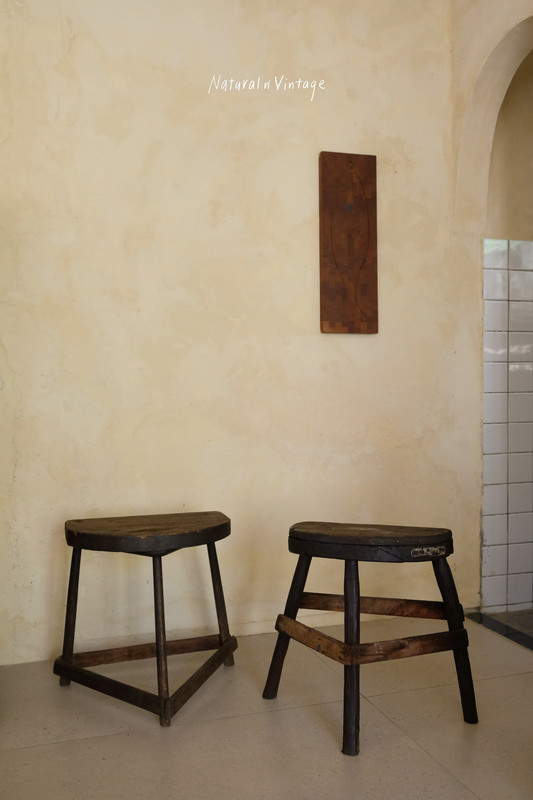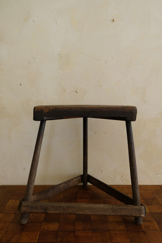 古木橫桿三足凳