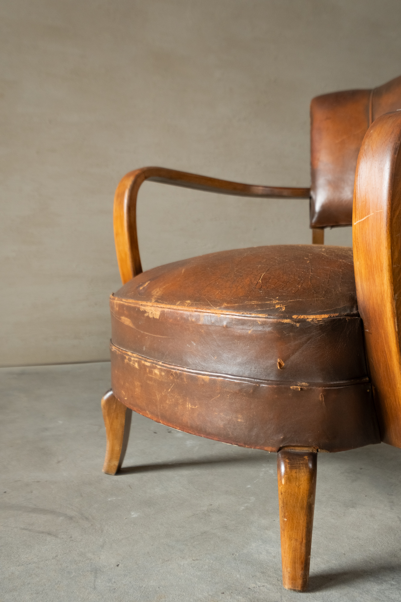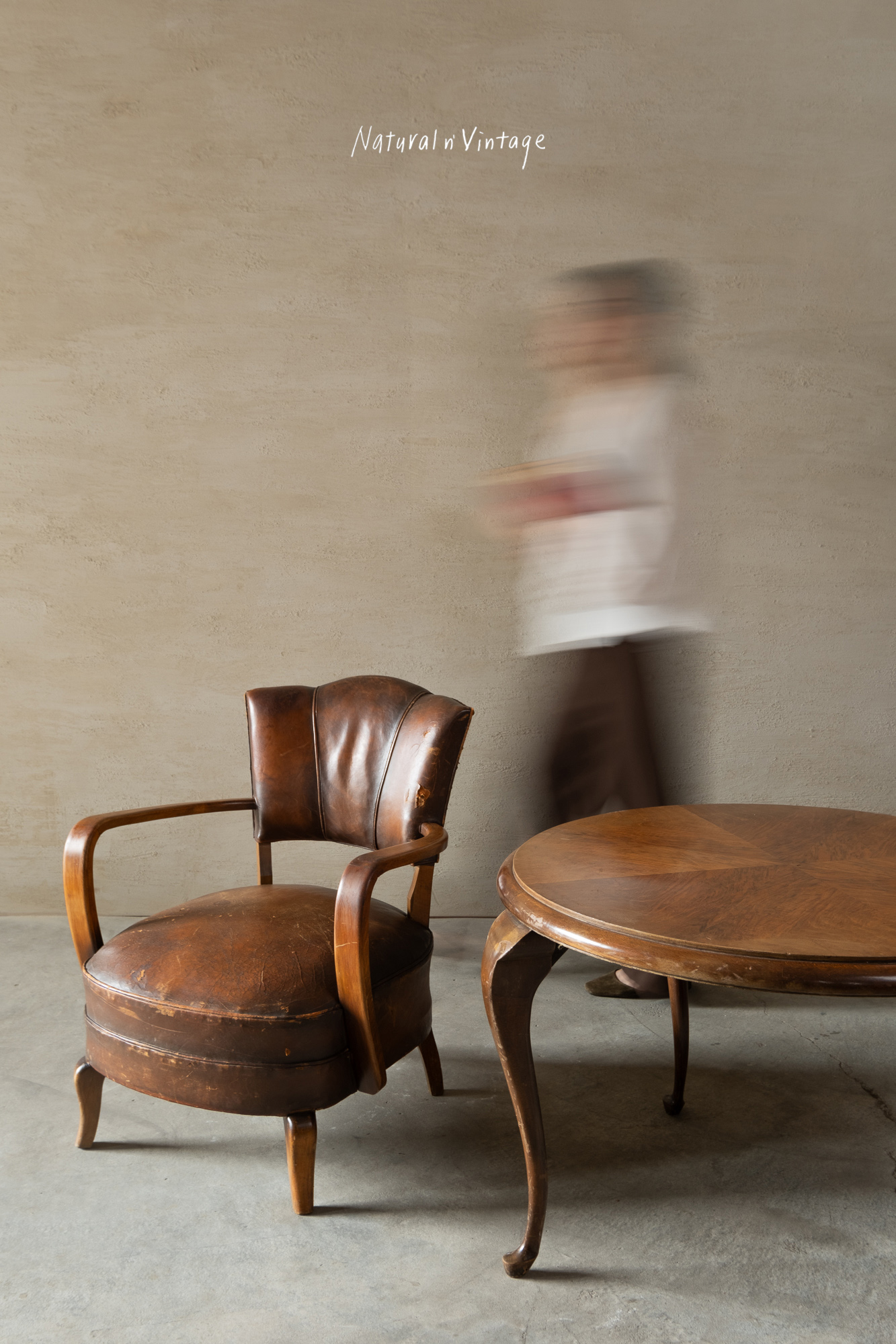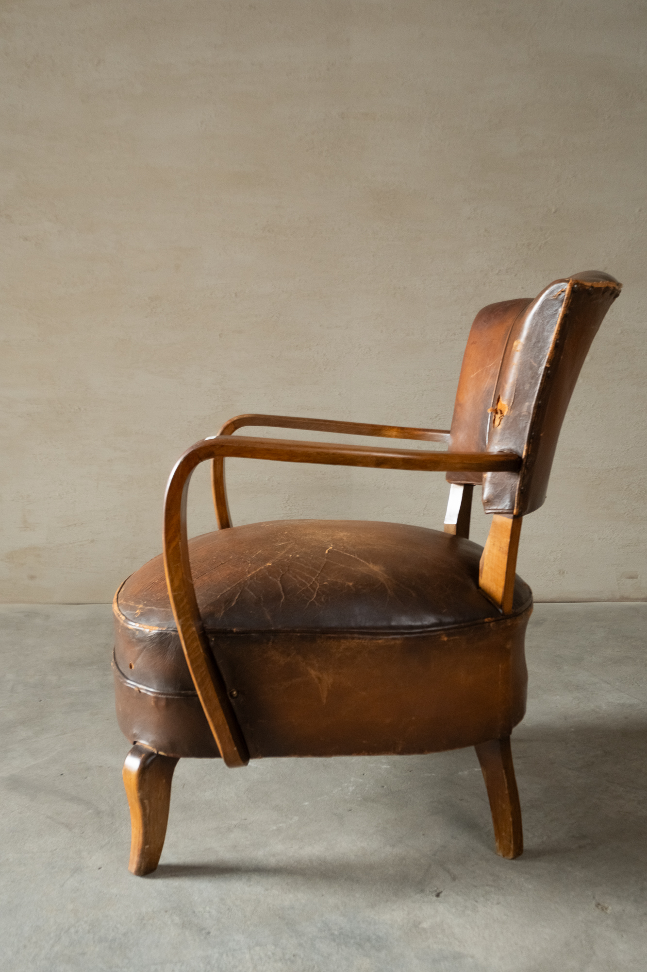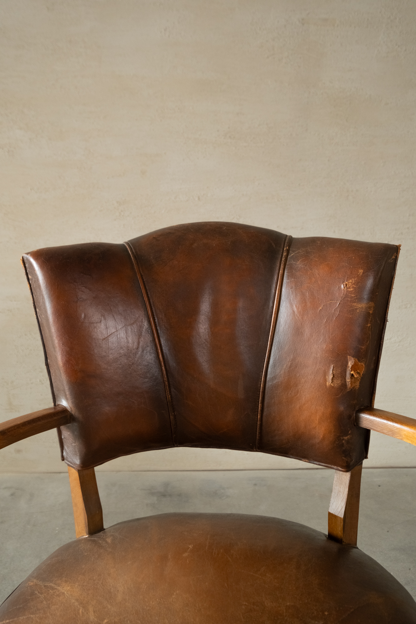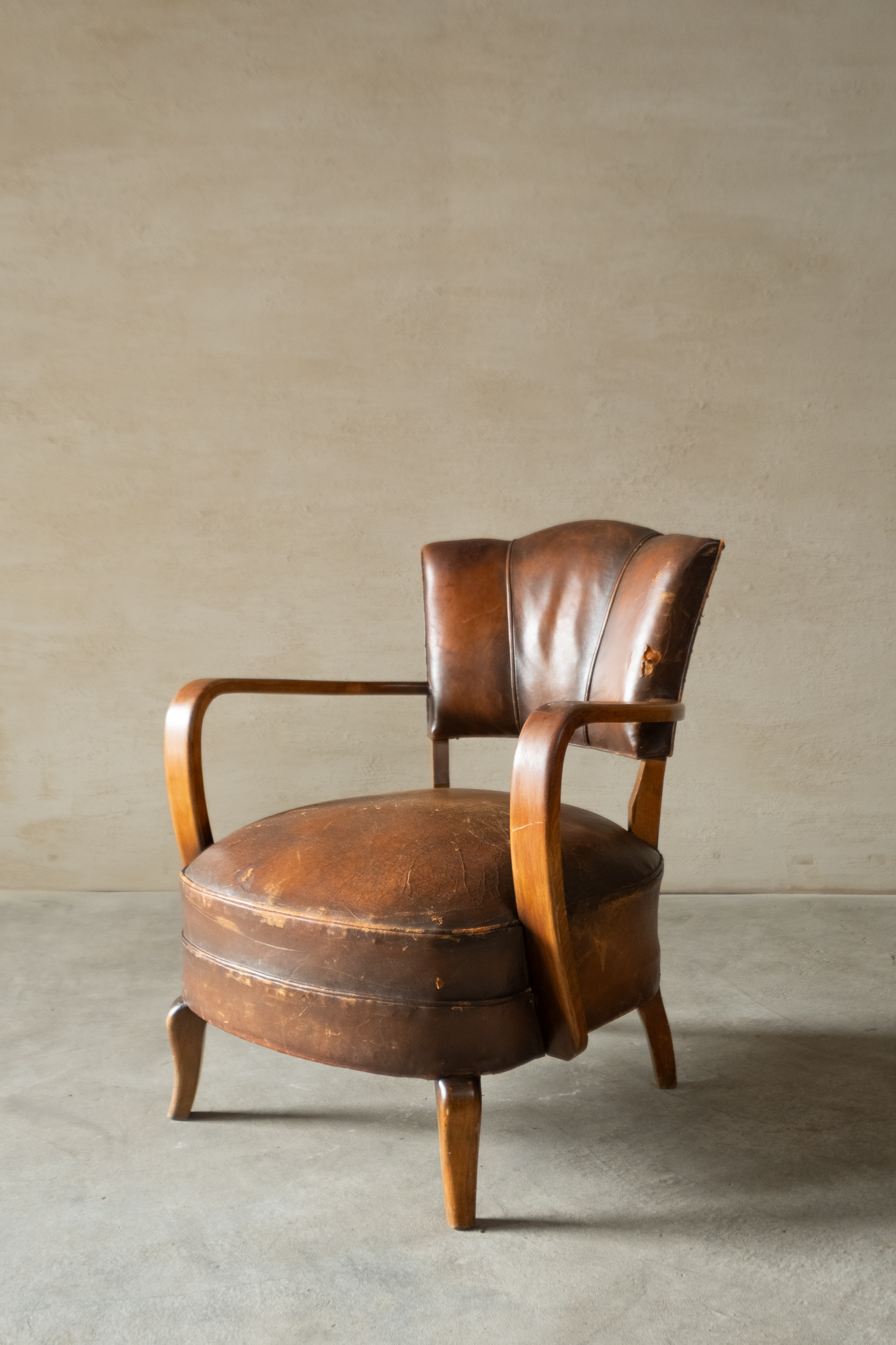 古董貝殼型扶手皮革椅